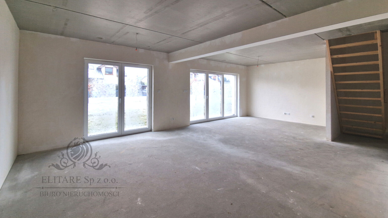 Zamontowane tymczasowe schody zaprowadzą nas na Piętro (schody właściwe do wykonania we własnym zakresie).